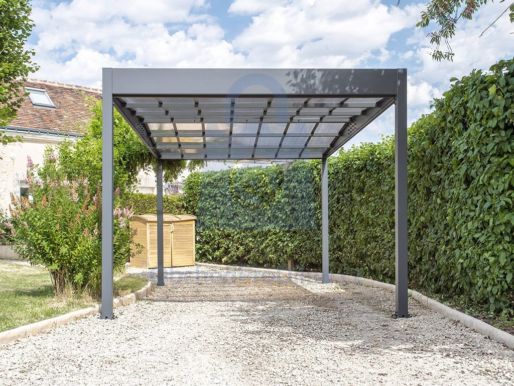 Kovový přístřešek na auto TRIGANO JARDIN LIBECCIO má robustní a odolnou konstrukci vyrobenou z hliníkových profilů, které jsou opatřeny vypalovanou práškovou barvou v odstínu antracit. Střecha je vyrobena z komůrkového polykarbonátu kouřově hnědé (bronz) barvy.