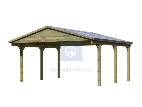 Nabízíme přístřešky převážně s odélníkovým tvarem a svými rozměry vyhovují většině modelů vozidel běžných na českém trhu. Primárně střechu podpírá šest dřevěných sloupků. Co se táký samotné konstrukce přístřešku, tak ta je tlakově impregnována. Díky tomu je dobře chráněna proti dřevokazným houbám i hmyzu, ale i proti nepříznivým povětrnostním podmínkám. Impregnace je zdravotně nezávadná a naprosto bezpečná. Vzhledem k velkým plochám střechy a zatížení větrem je nutné připevnit přístřešek k zemi pomocí odpovídajících zemních kotev. Co se týká střechy, tak ta je zhotovena z dřevěných desek. Nutno vypíchnout, že střesní krytina není ve většině případech obsahem balení.