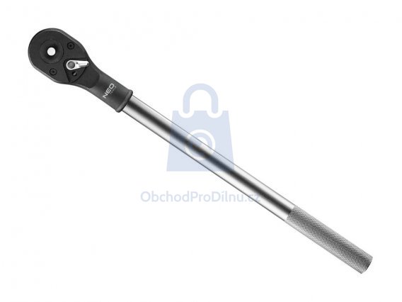 Ráčna s páčkou 24 - zubová od firmy NEO Tools. Vyrobená z chrom-vanadiové oceli. Ráčna je dlouhá 500 mm a upínání je 3/4. Rukojeť je rýhovaná. Vhodné pro profi i hobby dílnu, dlouhá životnost i při velmi častém používání. Na produkt se vztahuje záruka 2 roky.