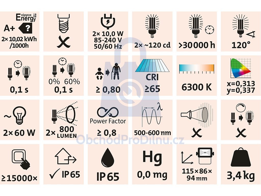 - světelný tok: 2 x 800 lm / 2 x 2 400 lm (varianta 11230001 / 11230002)