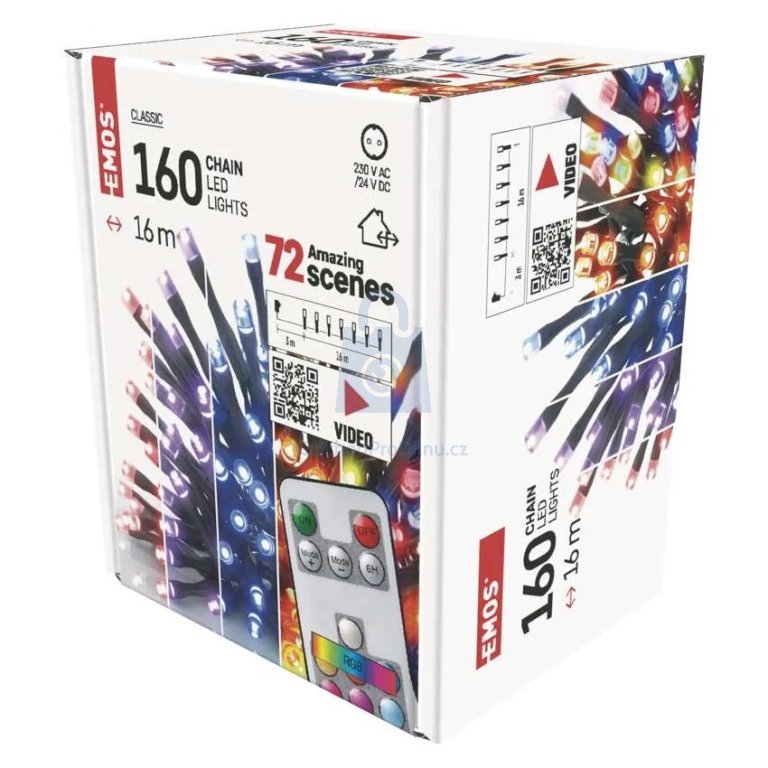 Výrobce: EMOS. LED řetěz CLASSIC s animací a RGB efekty, vhodný pro venkovní i vnitřní použití. Nabízí 72 režimů svícení a dálkové ovládání pro pohodlné nastavení atmosféry.