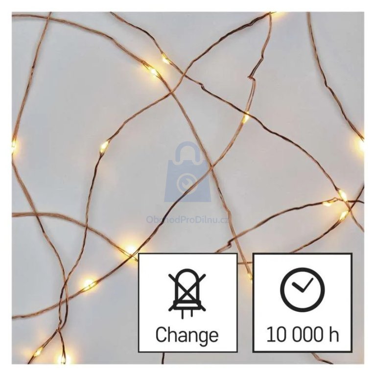 Výrobce: EMOS. Jemný bateriový nano LED řetěz s měděným drátkem pro vytvoření útulné atmosféry kdekoliv ve vašem interiéru.