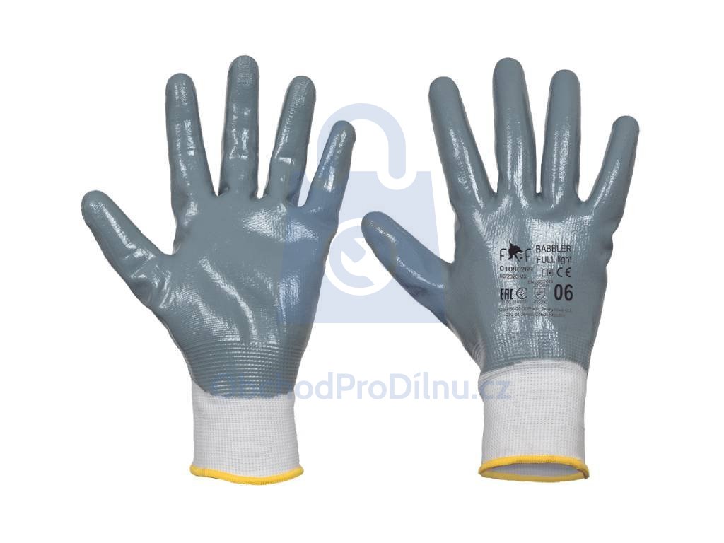| charakteristika produktu | bezešvé pletené rukavice plně máčené v nitrilu, pružná pletená manžeta, tenký a ohebný úplet pro dobrý cit v ruce |