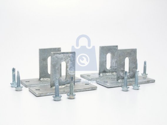 Zinkované plotové držáky pro přichycení plotových polí a stavbu plotu za použití sloupků z jacklu. Sada 4 ks držáků plotového pole speciálně určená pro sloupky obdélníkového či čtvercového průřezu, menší držák nejčastěji použijete pro sloupky s rozměrem do 40x40 mm, druhý pak pro sloupky větších rozměrů.