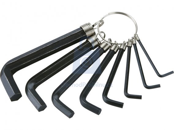 Sada 8 klíčů IMBUS ve tvaru L, který zajišťuje maximální využití vynaložené síly. Imbusy o velikosti 2 / 2,5 / 3 / 4 / 5 / 6 / 8 a 10 mm jsou zavěšeny na kroužku, a můžete je tak mít kdykoli po ruce, aniž by se nějaký z nich ztratil. V našem sortimentu naleznete také další ruční nářadí, které využijete v profi dílně i v každé domácí hobby dílně.