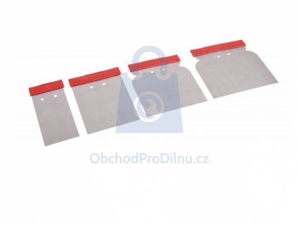 Sada stěrek japonských nerezových, 4 ks: 50, 80, 100, 120 mm. Nerezový břit, plastová rukojeť. Použití stěrek pro roztírání sádry nebo jiných tmelících hmot a k odstraňování staré malby či nátěrů apod. V našem sortimentu naleznete širokou nabídku ručního nářadí, se kterým si můžete vybavit svou dílnu.
