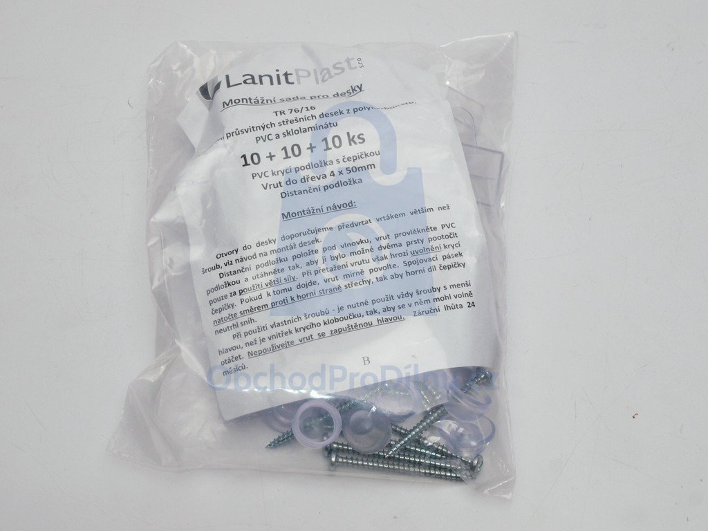 Sada pro montáž trapézových desek v profilu TR 76/16 obsahuje vruty do dřeva 4x50 mm půlkulatá hlava kříž, trapézové distanční podložky dle vybraného profilu a PVC ochranné podložky s čepičkou. Vhodné pro montáž trapézových desek s profilem 76/16. Před nákupem a montáží doporučujeme pečlivě prostudovat montážní kotvící detaily.
