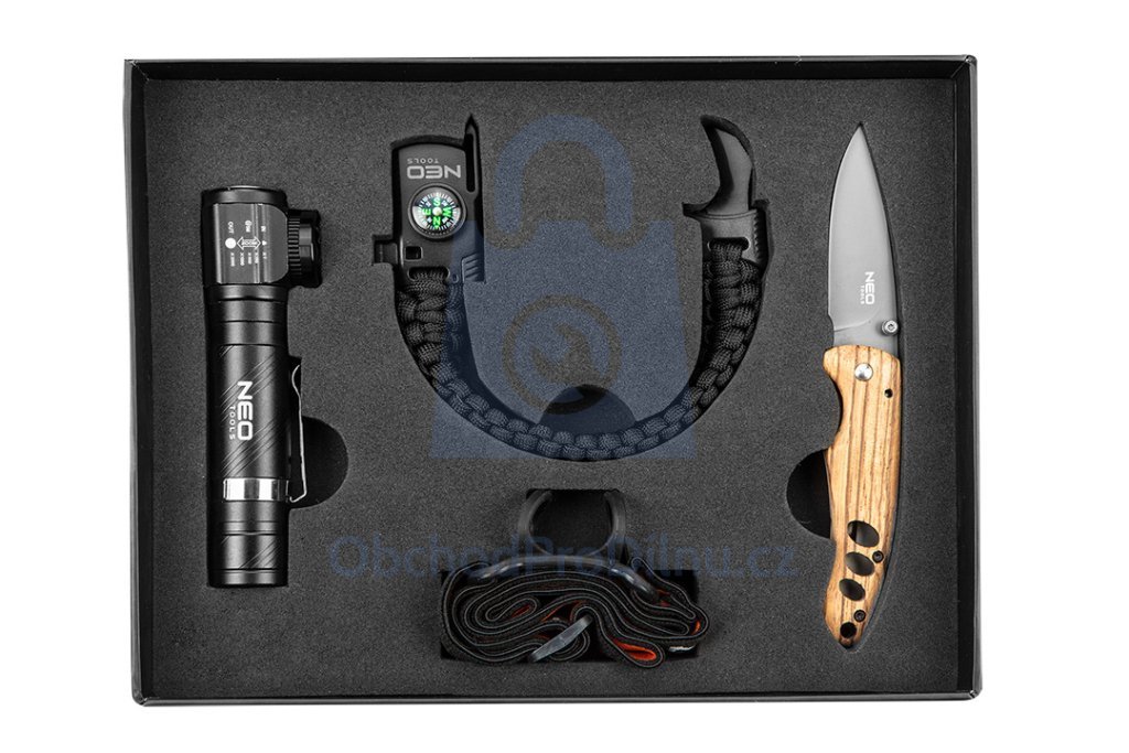 Třídílná sada na přežití obsahuje čelovou svítilnu, náramek pro přežití 5v1 a zavírací nůž. Sada je určena pro turisty, outdoorové nadšence a také pro všechny kutily. Sada je dodávána v luxusní krabičce a sadu lze tak zakoupit také jako dárek. Parametry a podrobné informace o všech dílech sady naleznete níže.