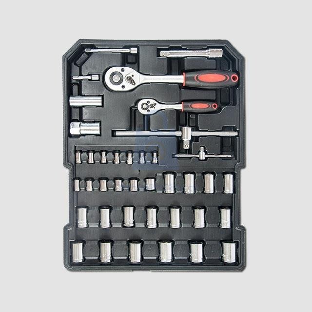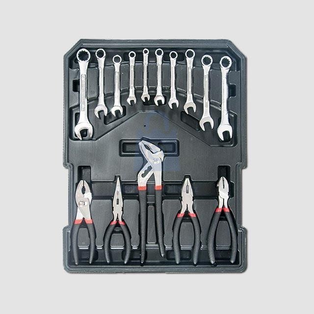 poznámka nářadí uloženo na plastových platech s prolisy pro každý kus zvlášť, což zabraňuje smíchání a vysypání nářadí při převozu
