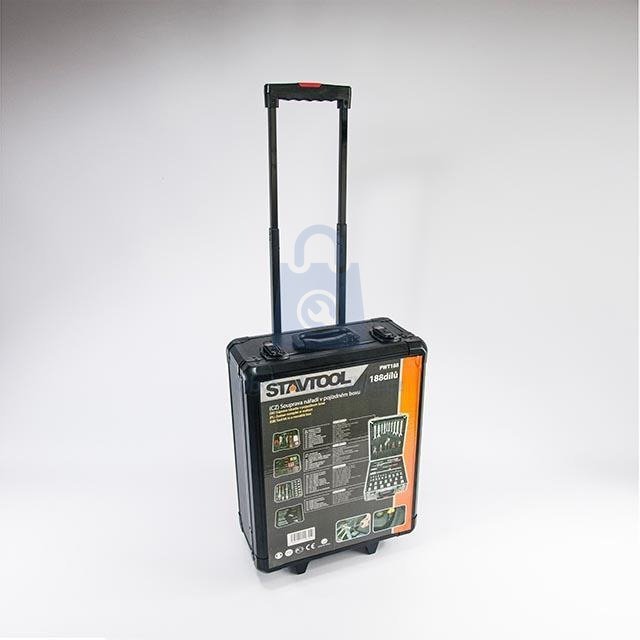 STAVTOOL sada nářadí v pojízdném hliníkovém boxu obsahuje celkem 188 dílů, které jsou přehledně uloženy na plastových platech s prolisy pro každý kus zvlášť. To zabraňuje vysypání nebo smíchání nářadí při převozu. Díky teleskopické rukojeti a kolečkům je kufr ideální pro mobilní použití, snadný transport a uložení do auta. Univerzální výbava pro kutily, montéry a servisní techniky.
