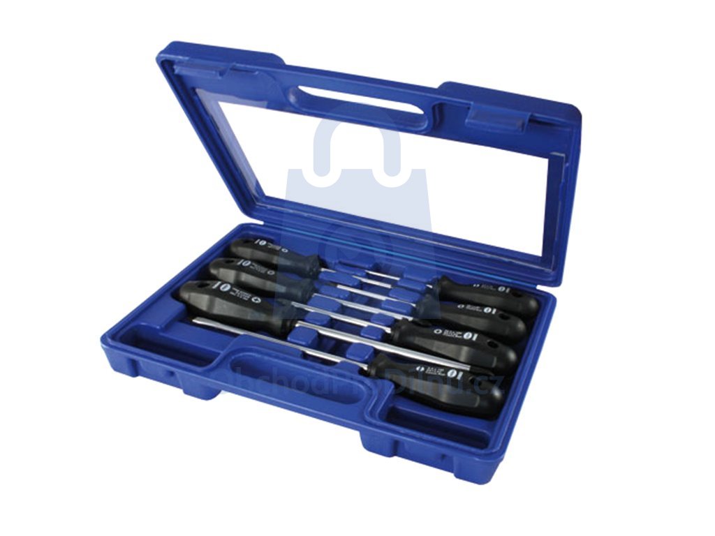 Sada šroubováků pro plochou, PZ a PH drážku určených pro montáž a opravy v náročných podmínkách. Dřík je vyroben z kvalitní legované ocele. Pracovní část je černěna. Rukojeť je ergonomická s šestihranným průřezem.