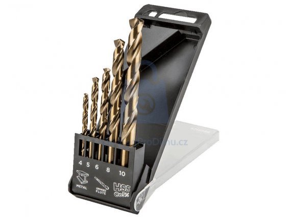 Obsah sady 5 kusů: průměry vrtáků 4, 5, 6, 8, 10 mm