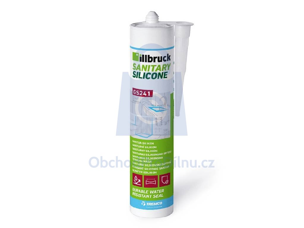 Illbruck GS241 je jednosložkový sanitární silikonový tmel na bázi acetoxy systému. Je speciálně vyvinutý pro tmelení spár v koupelnách, kuchyních a jiných vlhkých prostorech, kde je povrch často vystaven vodě a čisticím prostředkům. Tmel je dlouhodobě elastický, odolný proti stárnutí, plísním a mechanickému čištění. Vhodný pro použití na sklo, keramické obklady, eloxovaný hliník, email a další běžné nesavé podklady.
