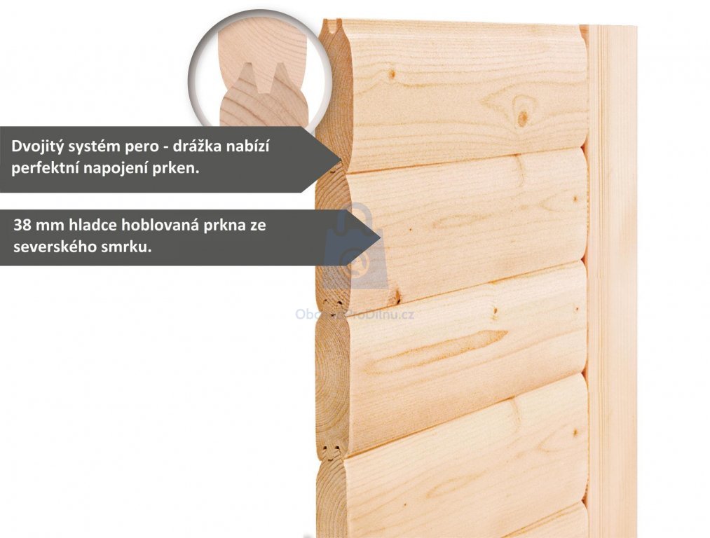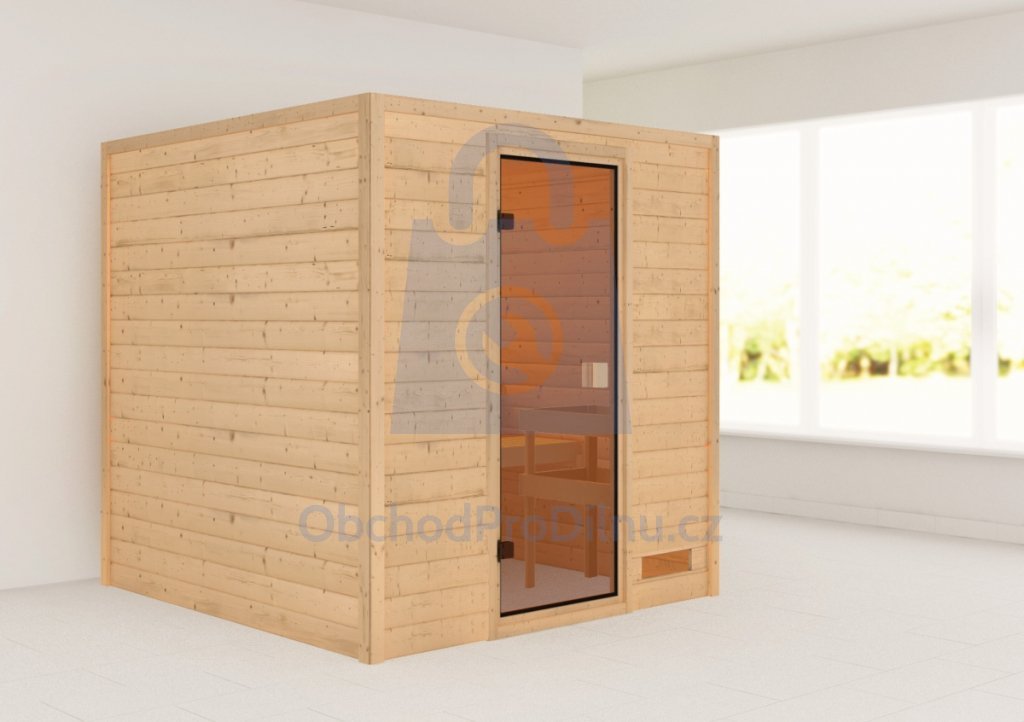Finská sauna určená až pro dvě osoby o rozměru 195 x 195 cm. Tento model finské sauny je určený do temperovaných interiérů domu nebo bytu. Její výrobce, firma KARIBU HOLZTECHNIK z německých Brém, dokázala svými výrobky úspěšně navázat na staletou tradici skandinávského saunování a současně do ní zapracovat dnešní moderní technologie. Sauna je celá vyrobena ze dřeva severského smrku v přírodním provedení. Dřevo pochází ze vzdáleného severu Evropy a je chemicky naprosto neošetřené (není ani namořeno ani nalakováno). V důsledku toho je prosté všech známých problematických látek, které by se v průběhu saunování mohly ze dřeva uvolňovat. Tato interiérová sauna je vyrobena z masivního dřeva síly 38 mm. Stěny sauny jsou složeny ze speciálně hlazených prken s dvojitým perem a drážkou, což garantuje neobyčejnou pevnost spoje.