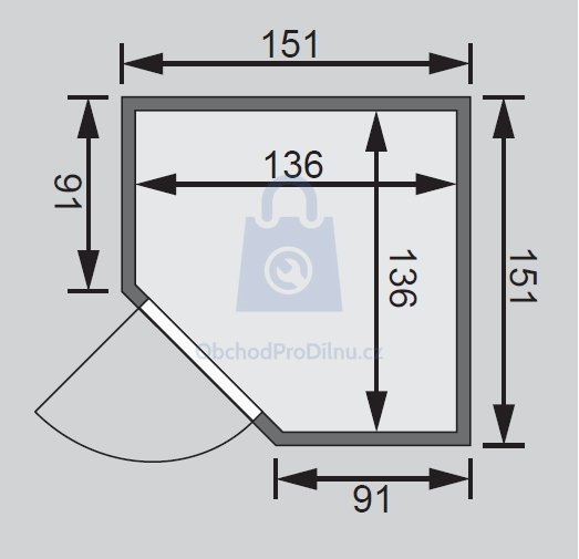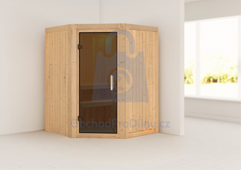 Sauna nemá vlastní podlahu a je nutné ji umístit výhradně v místnosti s odpovídající podlahovou krytinou, ideálně dlažbou. Sauna je dodávána bez dřevěného profilu u stropu, ve kterém může být instalováno dodatečné LED osvětlení.