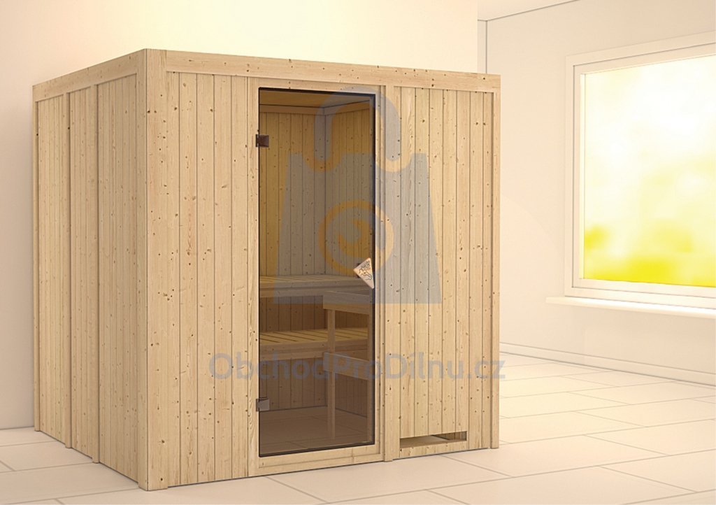 Finská sauna KARIBU SODIN je vnitřní sauna pro dvě osoby. Díky malým rozměrům se skvěle hodí do menších bytů. Vnitřní finská sauna je vyrobena ze dřeva severského smrku v přírodním provedení. Dřevo je chemicky neošetřené (není namořeno ani nalakováno). Tato sauna vykazuje mimořádné tepelně-izolační vlastnosti. Stěny sauny jsou složeny z vnitřní a vnější vrstvy speciálně hlazených prken s perem a drážkou, mezi kterými je 42 mm silná tepelná izolace v podobě minerální vlny. Zadní nebo boční nepohledové strany orientované ke stěně místnosti mají vnější stranu ze sololitu. Proto jsou při stejné tepelné izolaci o cca 10 mm tenčí než pohledové strany pokryté palubkami.