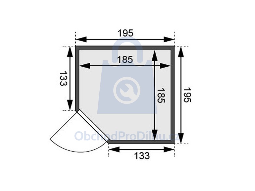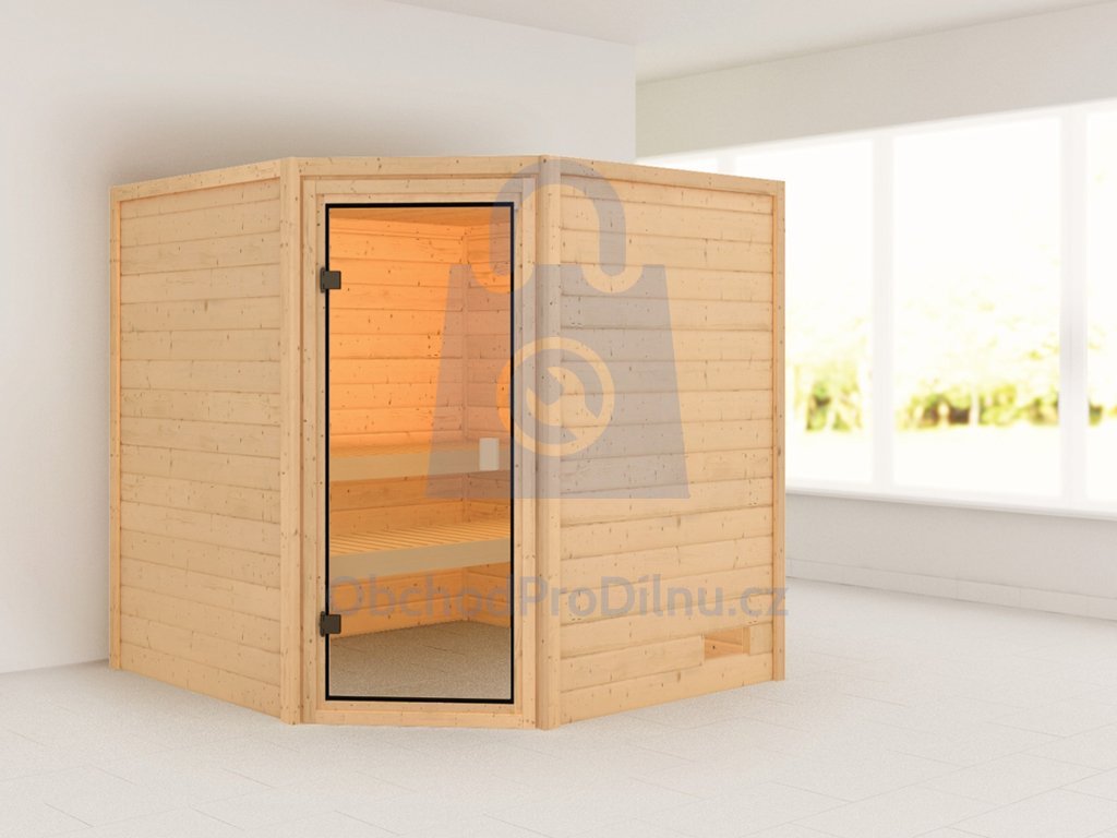 Finská sauna určená až pro dvě osoby s rozměrem 195 x 195 cm a rohovými dveřmi. Tento model finské sauny je určený do temperovaných interiérů domu nebo bytu. Její výrobce, firma KARIBU HOLZTECHNIK z německých Brém, dokázala svými výrobky úspěšně navázat na staletou tradici skandinávského saunování a současně do ní zapracovat dnešní moderní technologie. Sauna je celá vyrobena ze dřeva severského smrku v přírodním provedení. Dřevo pochází ze vzdáleného severu Evropy a je chemicky naprosto neošetřené (není ani namořeno ani nalakováno). V důsledku toho je prosté všech známých problematických látek, které by se v průběhu saunování mohly ze dřeva uvolňovat. Tato interiérová sauna je vyrobena z masivního dřeva síly 38 mm. Stěny sauny jsou složeny ze speciálně hlazených prken s dvojitým perem a drážkou, což garantuje neobyčejnou pevnost spoje.