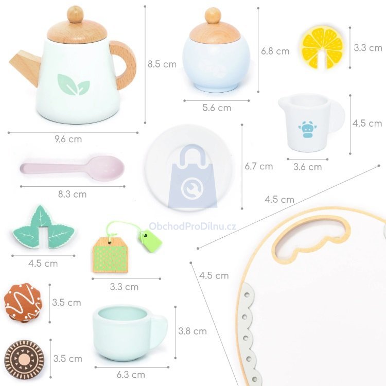 14 dílný čajový set umožňuje pozvat kamarády, rodiče nebo plyšáky na čaj. V sadě naleznou vše, co je pro správný čajový dýchánek potřeba - konvičku, hrnečky, talíčky i lžičky. Kromě toho samozřejmě nechybí čajové sáčky, cukřenka, nádoba na mléko a sušenky. Každý si tak může připravit nápoj púřesně podle své chuti!
