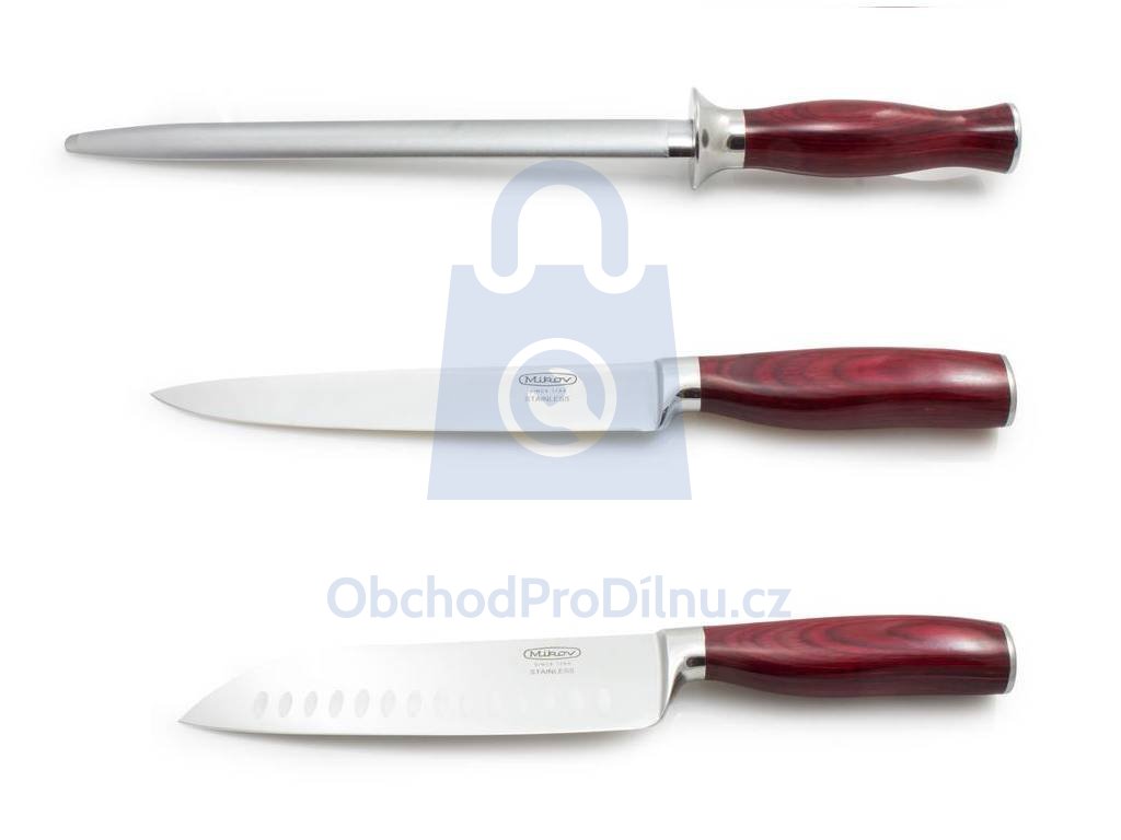 Výrobce: Mikov Mikulášovice. Praktická sada kuchyňských nožů RUBY s ocílkou pro precizní krájení i snadné broušení ostří – vhodná pro domácí i profesionální kuchyně.