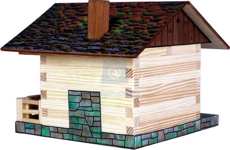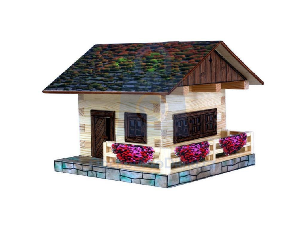 Výrobce: Walachia. Tradiční česká dřevěná stavebnice pro sestavení realistické alpské chaty.