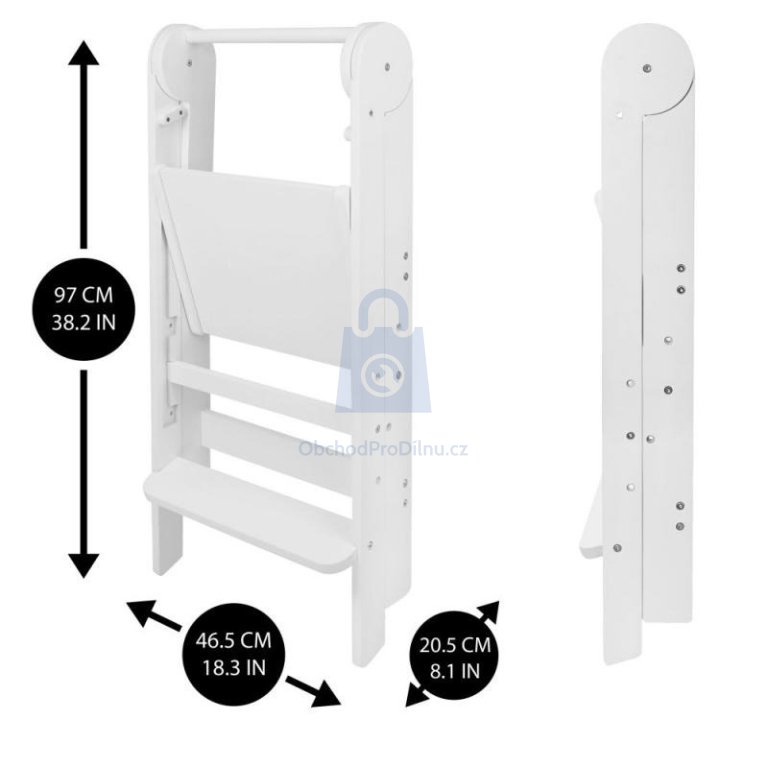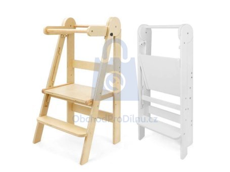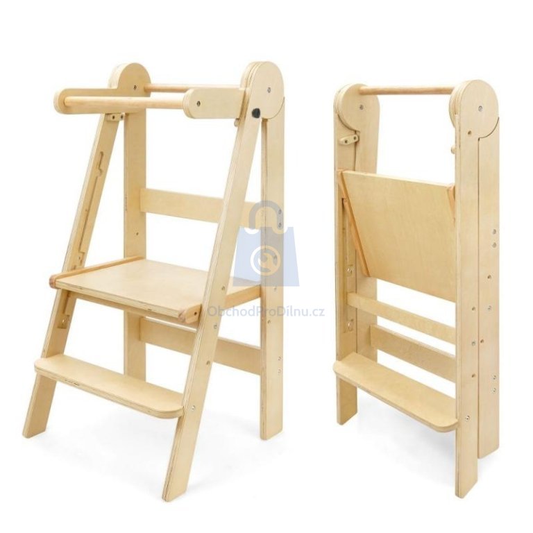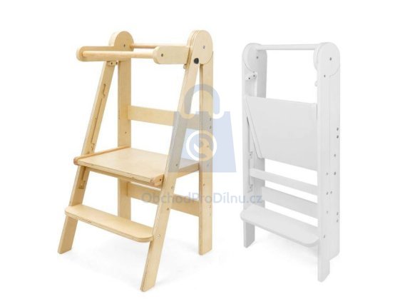 Výška věže je navržena tak, aby pasovala k většině kuchyňských linek i umyvadel, takže dítě může pomáhat s vařením, mytím rukou nebo jinými činnostmi.