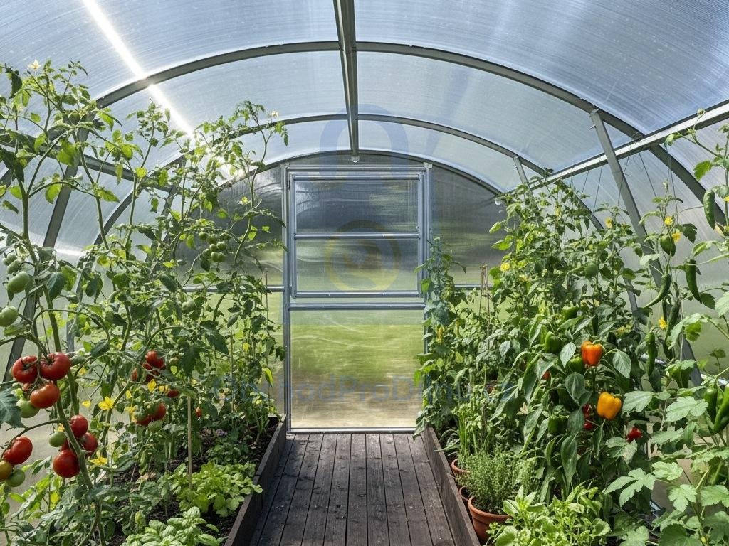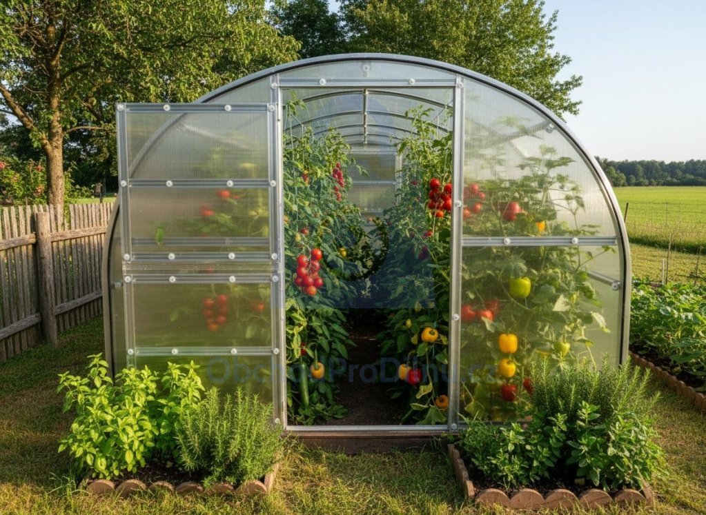 | provedení, specifické vlastnosti | obloukový skleník 3 × 4 m (12 m2) s kotvením přímo do země, bez nutnosti podezdívky, 95cm dveře, zadní a střešní ventilační okno |
