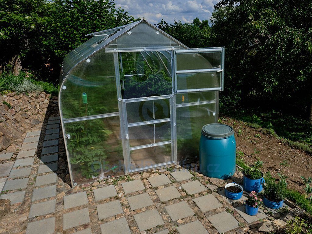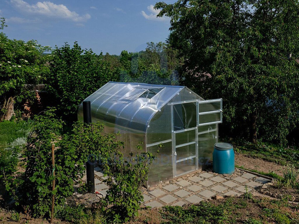 Zasklení tvoří vysokogramážní 4 mm nebo 6 mm polykarbonát Guttagliss s certifikací SZÚ, který vyniká výbornou tepelnou izolací. Skleník je vybaven větracím střešním oknem a kotví se snadno přímo do země pomocí silných kotev ve tvaru "T".