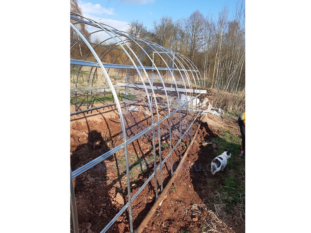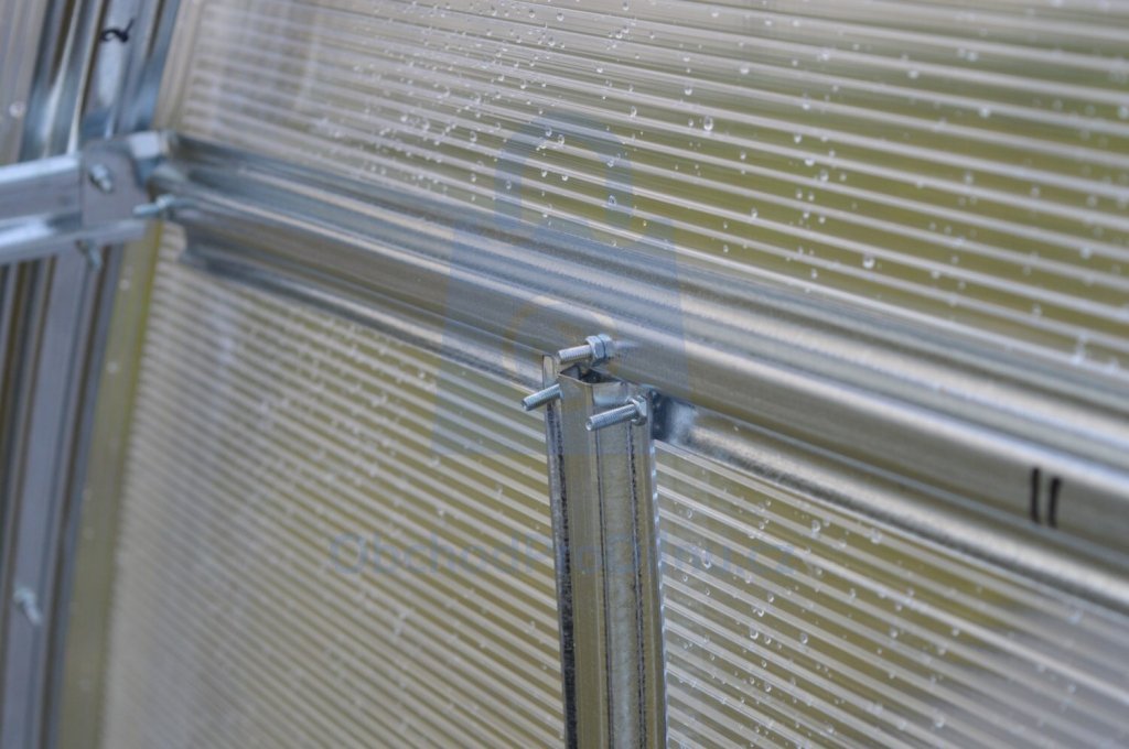provedení, specifické vlastnosti obloukový skleník s pozinkovanou ocelovou konstrukcí (0,7-0,85 mm)