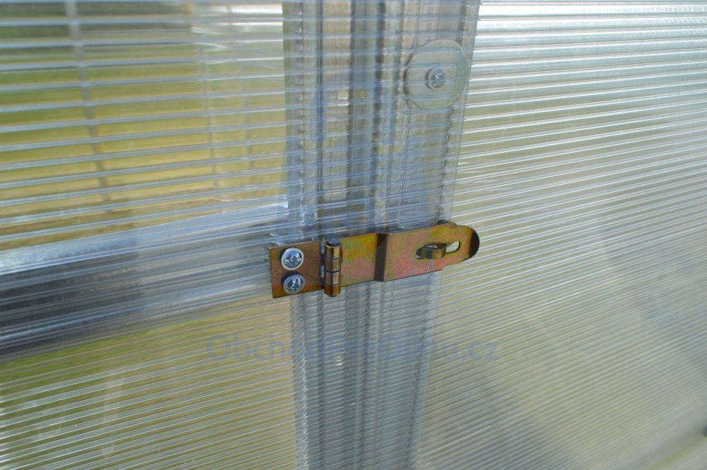 Pokud nechcete montovat druhé dveře v zadní části skleníku, je možné do stěny umístit větrací okénko (horní křídlo dveří je možné použít jako okno).