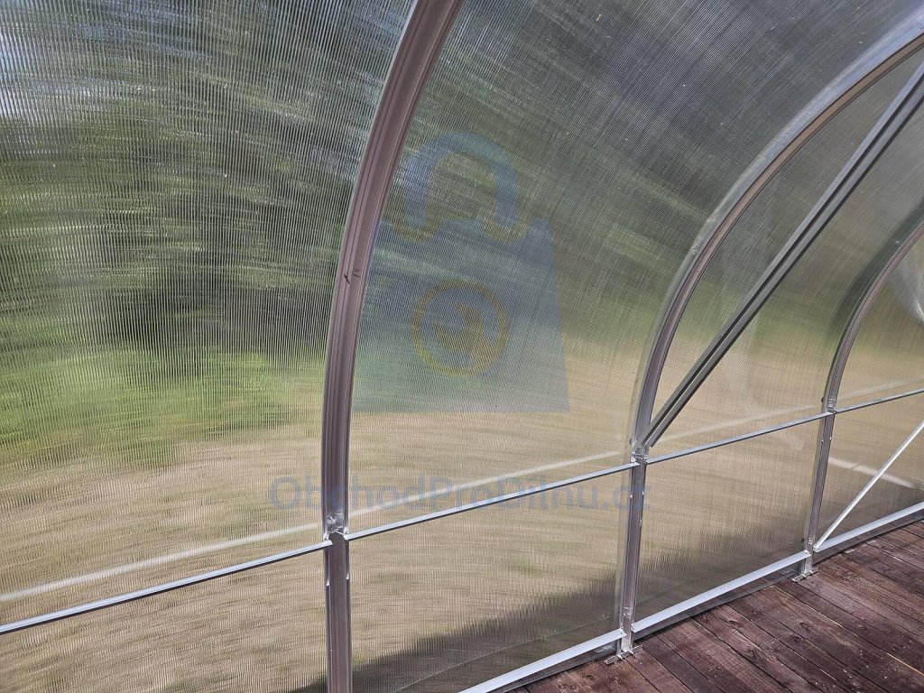 Zahradní obloukový skleník VITAVIA BOHEMY je profesionálním řešením pro pěstitele, kteří vyžadují maximální odolnost. Konstrukce je tvořena masivními eloxovanými hliníkovými profily o šířce 65 mm a síle 1 mm. Díky obloukovému tvaru a husté rozteči nosných žeber (100 cm) skleník výborně odolává větru i snehové zátěži.