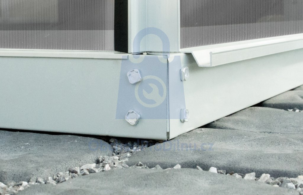 Stavba na podezdívce: Nepotřebujete základnu a skleník přímo přišroubujete k podezdívce. Je nutné dodržet montážní postup a doporučené rozměry podezdívky. Skleník musí být vždy k podezdívce přišroubován nebo jinak pevně ukotven na několika místech (poloha šroubů viz montážní návod).