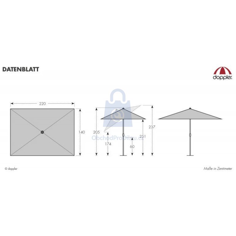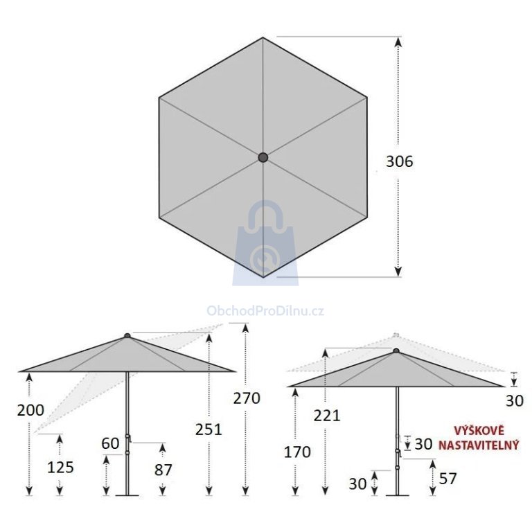 - celková výška otevřeného slunečníku: cca 251 cm