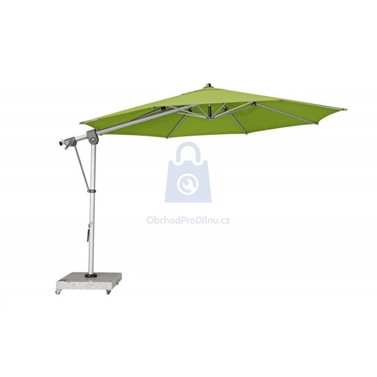 Vysoce kvalitní multifunkční slunečník s boční nohou, který Vás spolehlivě ochrání před slunečními paprsky. Má velkou střechu o průměru 350 cm, díky čemuž je ideální pro zastínění zahradního posezení. Jeho masivní konstrukce je vyrobená z pevného a odolného hliníku a všechny díly jsou šroubované. Slunečník je otočný o 360° a disponuje bočním naklápěním, takže jej můžete snadno přizpůsobit pohybu slunce. Potah je snímatelný pro ruční praní a impregnovaný proti plísni a špíně. Má vysokou stálobarevnost a vysokou UV ochranu 80 SPF. Slunečník dodáváme včetně ochranného obalu.