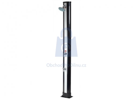 Venkovní solární sprcha COMFORT vám umožní ekologický ohřev vody. Solární sprcha se naplní až 35 litry studené vody, zásobník poté absorbuje sluneční energii a vodu zahřeje až na 60 °C. Solární sprcha v elegantním designu má přední stříbrný panel, velkou nastavitelnou sprchovou hadici a také spodní extra kohoutek určený pro oplach nohou. Sprcha se ovládá pákovým kohoutem, na kterém si můžete nastavit, zda chcete teplou nebo studenou vodu. Sprcha, kohoutel i ovládání jsou v chromovém provedení. Sprcha je vybavena bočním ventilem pro napojení zahradní hadice. Součástí balení je také kovová kotvicí patka.