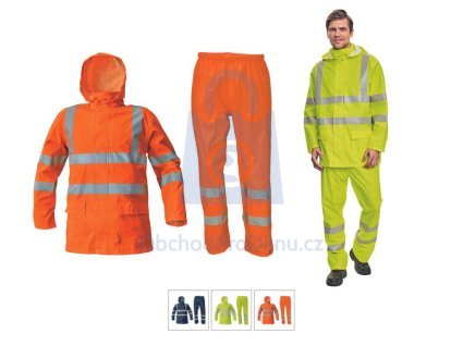 Bunda má kapuci integrovanou v límci, zapínání na zip s légou a 2 přední kapsy kryté légami. Rukávy je možné stáhnout pomocí druků. Reflexní pruhy jsou vedeny okolo pasu, boků, rukávů a přes ramena. Kalhoty mají reflexní pruhy po obvodu spodních nohavic, což společně s výrazným HI-VIS provedením (žlutá nebo oranžová barva) zajišťuje vysokou viditelnost.