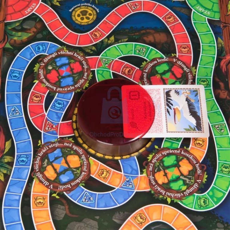 provedení, specifické vlastnosti napínavá stolní hra inspirovaná filmem Jumanji, kde hráči spolupracují, aby přežili nástrahy džungle a zachránili svět, kombinuje strategii a rychlé reakce