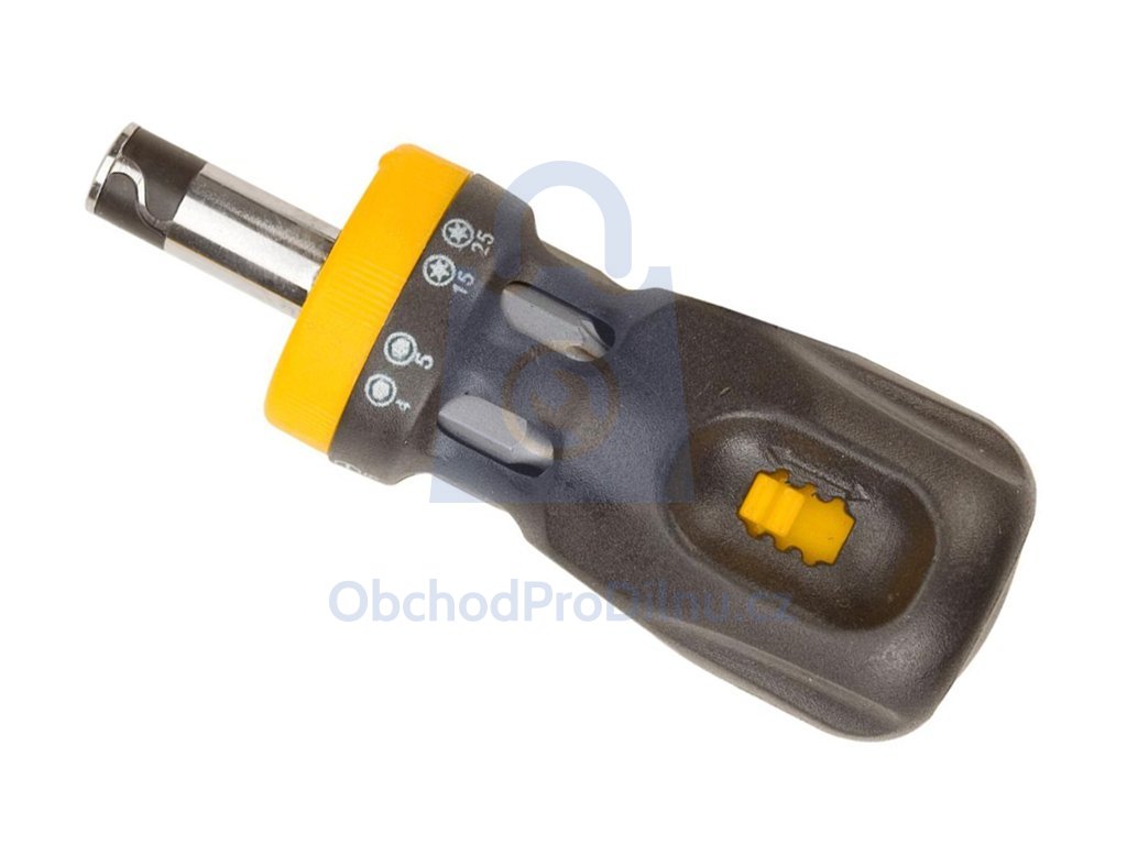 Šroubovák ráčnový krátký s bity v rukojeti - info ve zkratce: