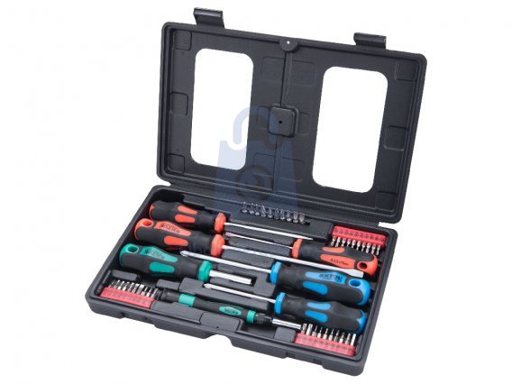 47 dílná sada obsahuje 7 šroubováků a bity. Součástí sady jsou bity velikosti 1/4" i mini bity (4 mm) vyrobené z kvalitní chrom-vanadové oceli. Sada je dodávána v plastovém pouzdře.
