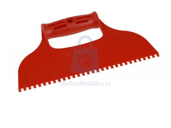 Zubová stěrka vyrobena z plastu o rozměru 235 mm. Její rukojeť je ergonomická. Můžete ji využít ve štukatérství, malířství, zednictví. Také je vhodná pro roztírání lepících malt, tam kde je potřeba zajistit souměrnou vrstvu lepidla - hmoty. Dále u nás naleznete různé zednické nářadí a nespočet dalšího ručního nářadí, které se Vám může hodit.