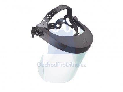 Lehký celooličejový štít slouží k ochraně obličeje a očí. Obličejový štít je vybaven náhlavním držákem a čirým polykarbonátovým zorníkem třídy F a vyhovuje normě EN 166.