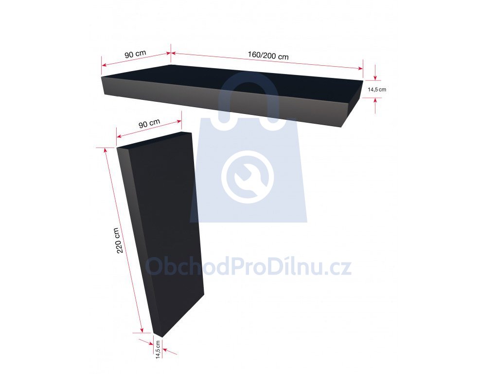2000 x 900 x 145 mm (šířka x hloubka x výška)