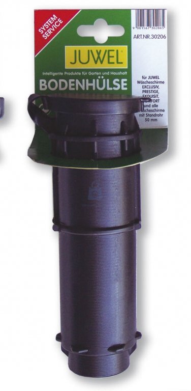 Zemní plastové pouzdro = ukotvení do země je vyřešeno plastovým pouzdrem, které se musí v místě sušáku zabetonovat do země. Pak se do pouzdra zasune nosná tyč sušáku. Pouzdro se musí zabetonovat do roviny s povrchem, pak je bezpečné i pro travní sekačku. Pouzdro je opatřeno plastovým víčkem.