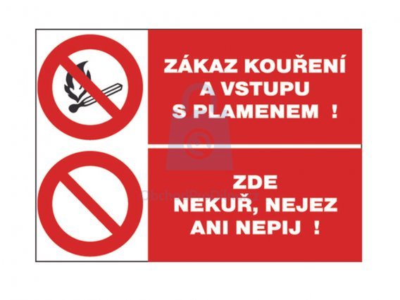 Bezpečnostní tabulka Zákaz kouření a vstupu s plamenem / Nejez, nepij je vyrobena z plastu (PSH) a má rozměry 30 x 21 cm. Bezpečnostní tabulky můžete využít např. na pozemku, pracovištích, ve skladech, na stavbách a všude tam, kde je potřeba dbát na bezpečnost a předpisy.