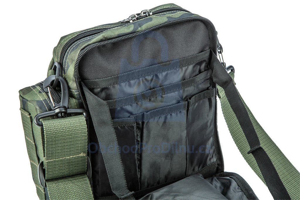 Taška na nářadí přes rameno je vyrobena z kvalitního vyztuženého polyesteru. Taška má 4 vnější a 4 vnitřní kapsy, což je ideální pro organizaci a uspořádání nářadí a dalšího vybavení. Taška má nastavitelný ramenní popruh, který lze v případě potřeby odepnout. V zadní části tašky se nachází připínání na opasek. Taška je svým charakterem vhodná také jako outdoorové vybavení při pobytech v přírodě.