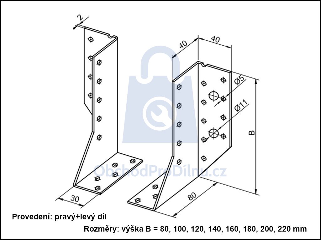 Prodej tesařských třmenů je realizován v páru, vždy levé a pravé provedení. Únosnosti třmenů jsou v dokumentu ke stažení (součástí technického popisu, ve spodní části)