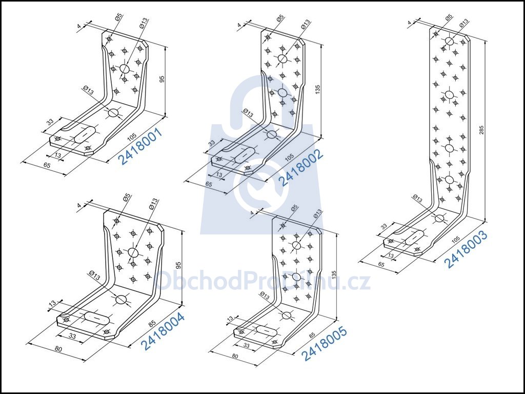 P O Z O R! Výše uvedená fotka je pouze ilustrační, každý z výše uvedených úhelníků se liší s ohledem na jiný rozměr ramen. Pro výběr vhodného úhelníku využijte prosím technický obrázek!
