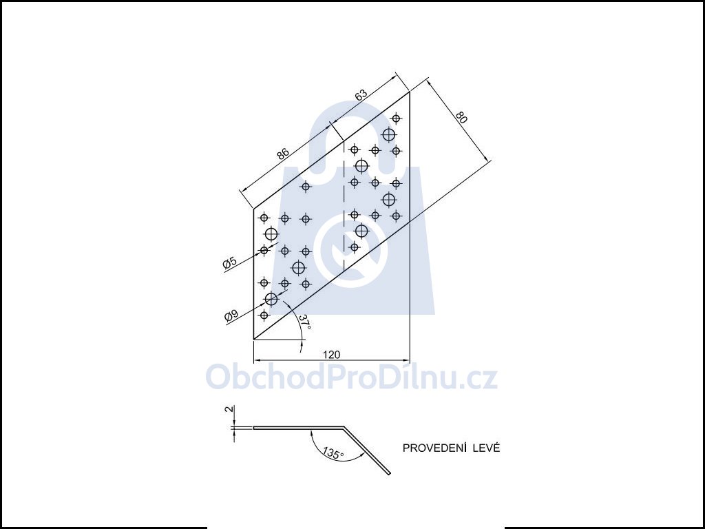 | provedení, specifické vlastnosti | úhelník otevřený |
