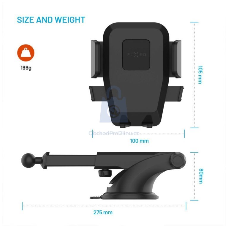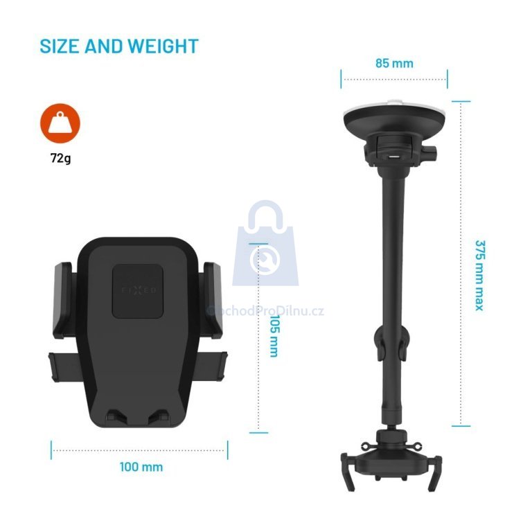 FIXED Iconiq XXL: Na čelní sklo nebo palubní desku s teleskopickým ramenem (10,8–16,8 cm).