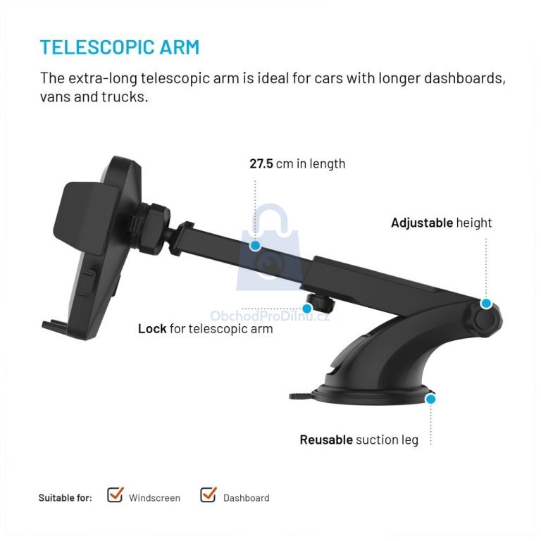 XXL: teleskopické rameno 10,8–16,8 cm, přísavný podstavec