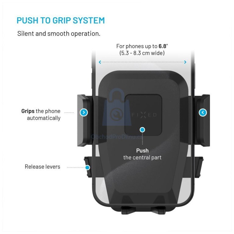 Univerzální držáky FIXED Iconiq nabízí bezpečné, jednoduché a rychlé uchycení telefonu během jízdy autem. Díky rychloupínacímu systému Push and Grip stačí telefon lehce přitisknout – boční kleště se automaticky přizpůsobí velikosti a pevně jej uchytí. Odepnutí je otázkou jednoho stisku. Držáky vznikly kompletně v České republice, kombinují funkční minimalistický design, kvalitní materiály a plynulé, tiché ovládání.